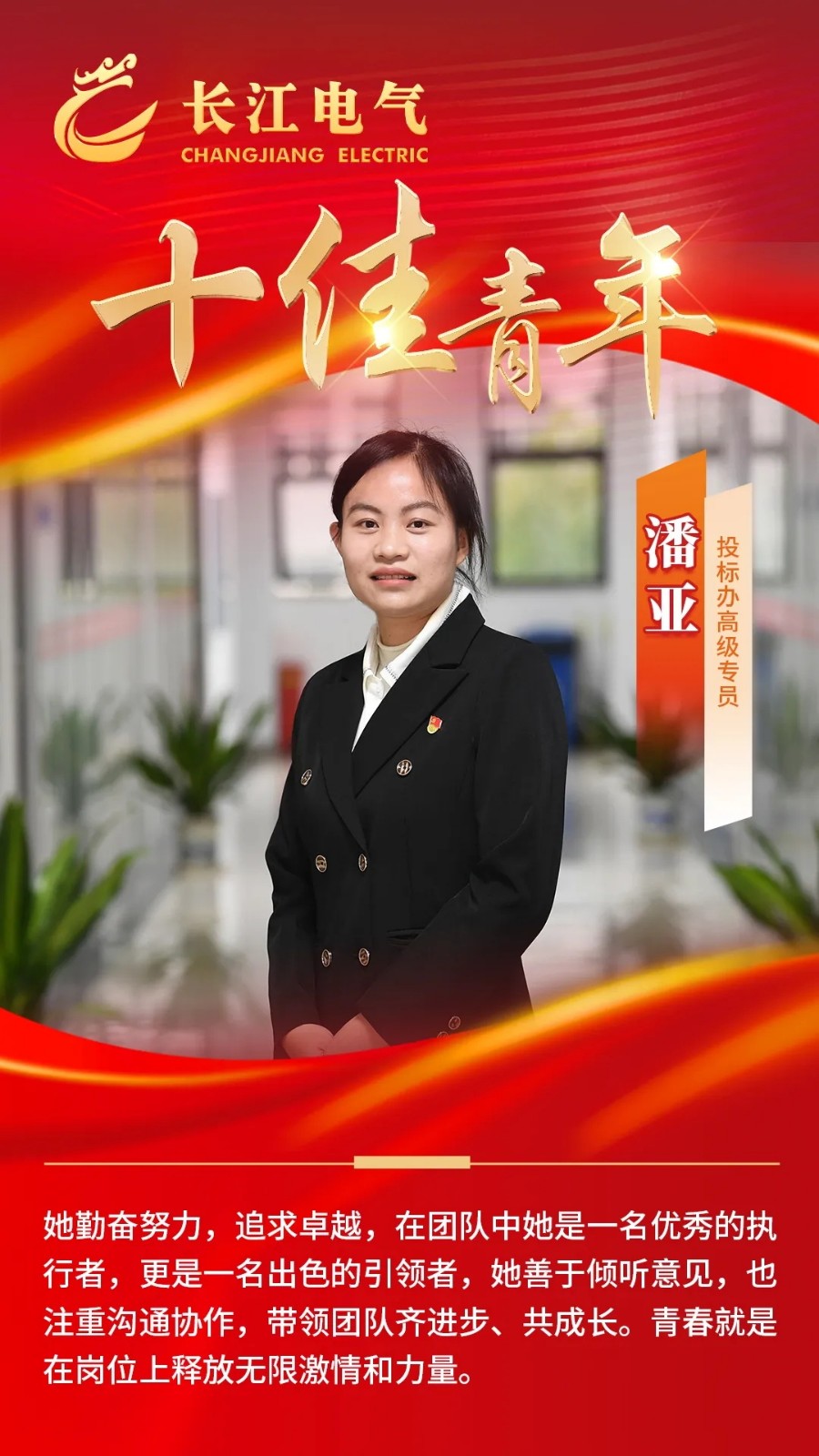 黨的二十大報(bào)告提出,深入實(shí)施人才強(qiáng)國(guó)戰(zhàn)略,并將大國(guó)工匠、高技能人才納入國(guó)家戰(zhàn)略人才力量。企業(yè)的高質(zhì)量發(fā)展,同樣離不開(kāi)工匠人才、高技能人才的堅(jiān)實(shí)支撐。長(zhǎng)江電氣輪值總裁、工會(huì)主席黃飛寧表示,未來(lái),長(zhǎng)江電氣將大力弘揚(yáng)工匠精神,以匠心創(chuàng)造精品;創(chuàng)新匯聚青春力量,以?shī)^斗書(shū)寫(xiě)青春亮麗底色;不斷打造奮斗者文化,鼓勵(lì)每位長(zhǎng)電人心懷夢(mèng)想、奮勇拼搏,一步一個(gè)腳印,一棒接著一棒,助力企業(yè)深耕智能電網(wǎng)和智慧能源建設(shè)黃金賽道,推動(dòng)能源建設(shè)向智能化、數(shù)字化轉(zhuǎn)型,加快發(fā)展新質(zhì)生產(chǎn)力,助力綠色低碳美麗中國(guó)建設(shè)!
