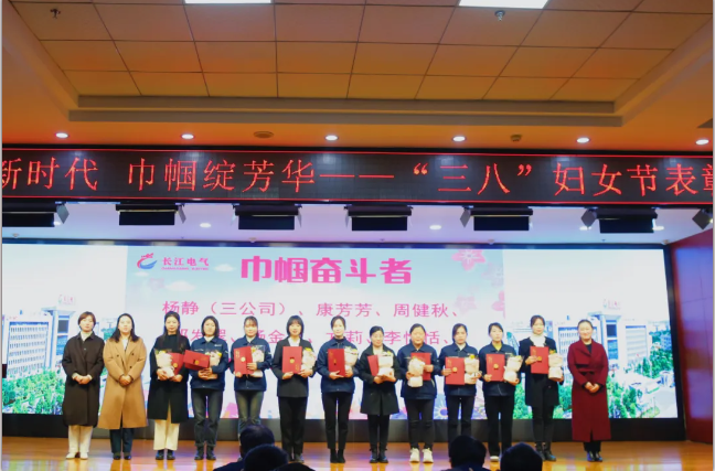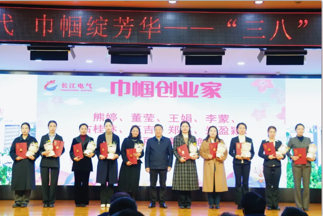 表彰大會上,長江電氣婦聯(lián)主席陳珉作婦聯(lián)工作報告,副主席彭易宣讀表彰決定,王娟等10位“巾幗創(chuàng)業(yè)家”、楊碧云等10位“巾幗頭雁”、楊靜等10位“巾幗奮斗者”受到表彰。
