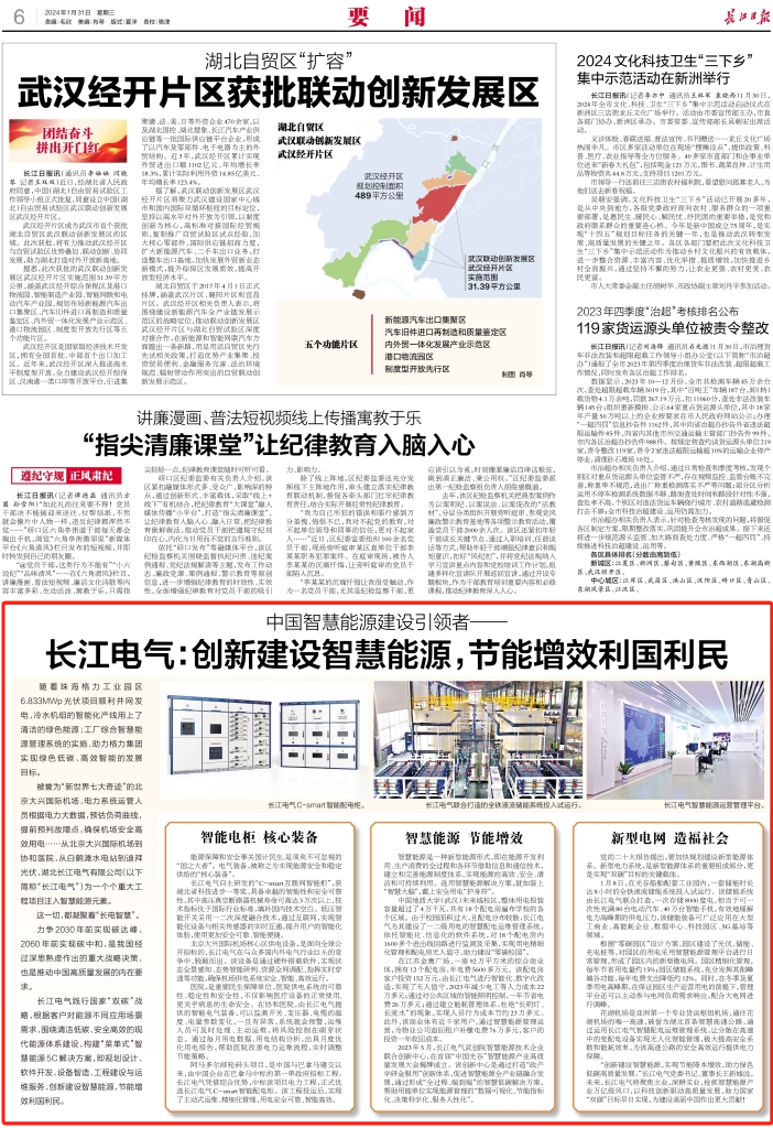 2024年1月31日,《湖北日報》和《長江日報》均在要聞版,以《中國智慧能源建設(shè)引領(lǐng)者——長江電氣:創(chuàng)新建設(shè)智慧能源 節(jié)能增效利國利民》為題,專題報道長江電氣高質(zhì)量發(fā)展。