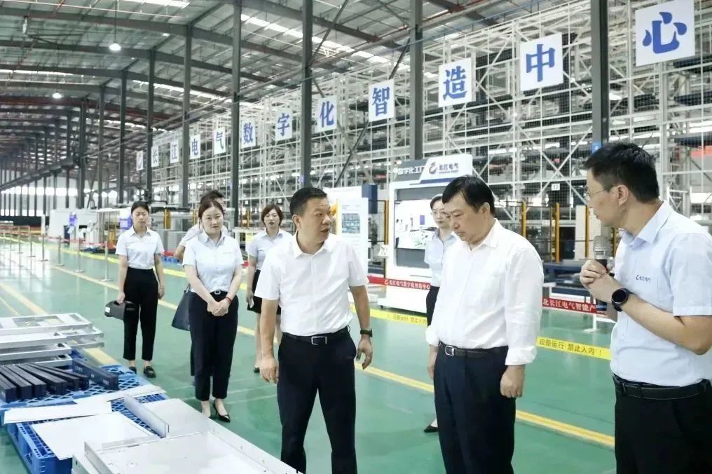 揭建平一行參觀長江電氣數(shù)字化展廳,深入紅色智造車間及數(shù)字化智造一線,詳細(xì)了解企業(yè)生產(chǎn)經(jīng)營、重大項(xiàng)目、產(chǎn)品研發(fā)、產(chǎn)業(yè)布局等情況。