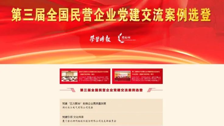 2023年3月-6月,理論網(wǎng)及《學習時報》共同發(fā)布第三屆“全國民營企業(yè)黨建經(jīng)驗交流會”征稿啟事,面向全國征集民企黨建工作經(jīng)驗與創(chuàng)新案例。長江電氣黨建工作實踐入選該案例集,并于9月7日在理論網(wǎng)“民企黨建案例”專欄第一條進行了選登。